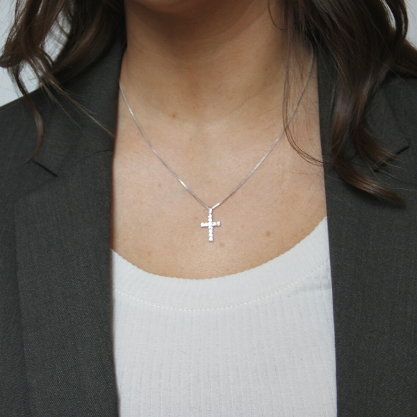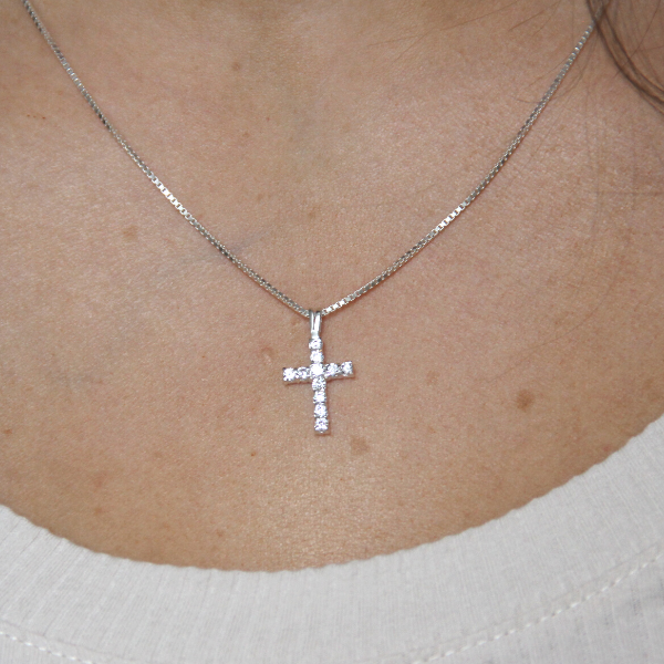 Ett vackert halssmycke med ett kors med 11 små zirkoniastenar. Korsets storlek är ca 17x12mm. Kedja ingår ej utan det väljer du till i menyn för kedjor. Till detta passar Venezia väldigt fint.