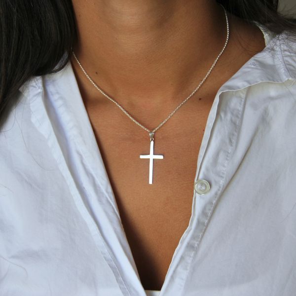 Ett stilrent kors utan krusiduller. Korsets är 33x18mm exklusive öglan. Korset säljs utan kedja men du kan välja till en kedja i menyn.
