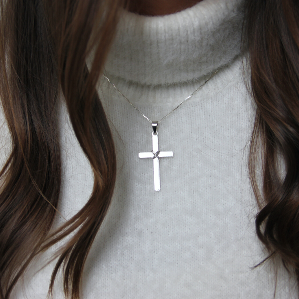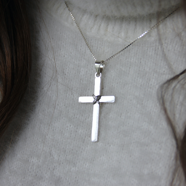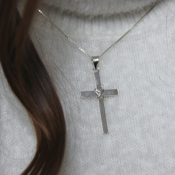 Större kors med ett vackert mönster. Korset är 40 mm långt och 25mm brett. Stor ögla så det passar med en tjockare kedja eller läderband.