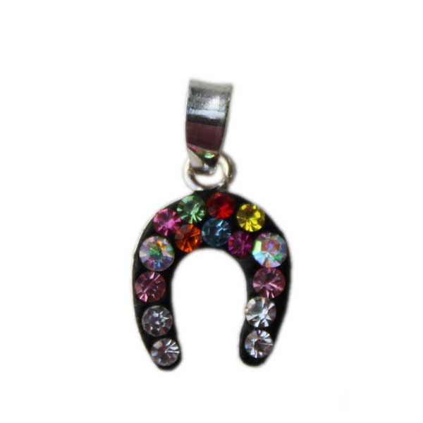 Söt hästsko med massa små kristaller i mixae färger. Till detta smycke rekommenderar vi en kulkedja som glittrar vackert till smycket. Smycket är 9x10 mm.