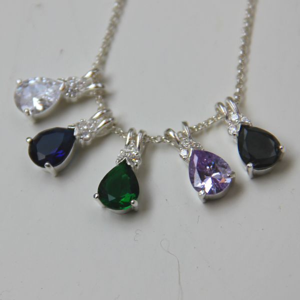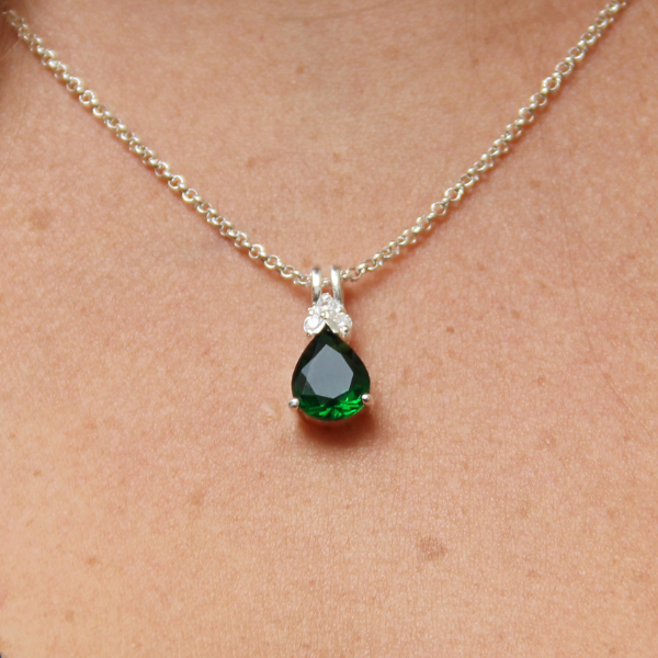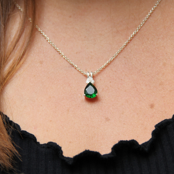 Ett otroligt lyxigt halssmycke i silver med en droppformad, grön sten och tre mindre vita stenar ovanför. Detta halssmycke mäter cirka 17x8mm. Stenarna är cubic zirkoner.
