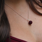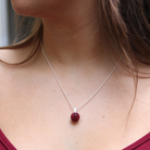 Halssmycke med fin, mörkröd kristallboll i silver och kristall som glittrar vackert runt halsen. Finns i massa färger och kollektionen innehåller även örhängen och armband.
