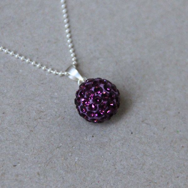 Halssmycke med en fin kristallboll i silver och kristall som glittrar vackert runt halsen. Finns i massa färger.