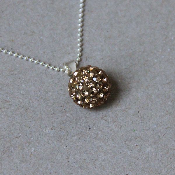 Halssmycke med en fin kristallboll i silver och kristall som glittrar vackert runt halsen. Finns i massa färger.