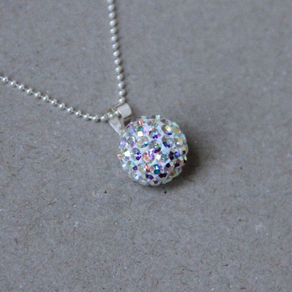 Halssmycke med en fin kristallboll i silver och kristall som glittrar vackert runt halsen. Finns i massa färger.