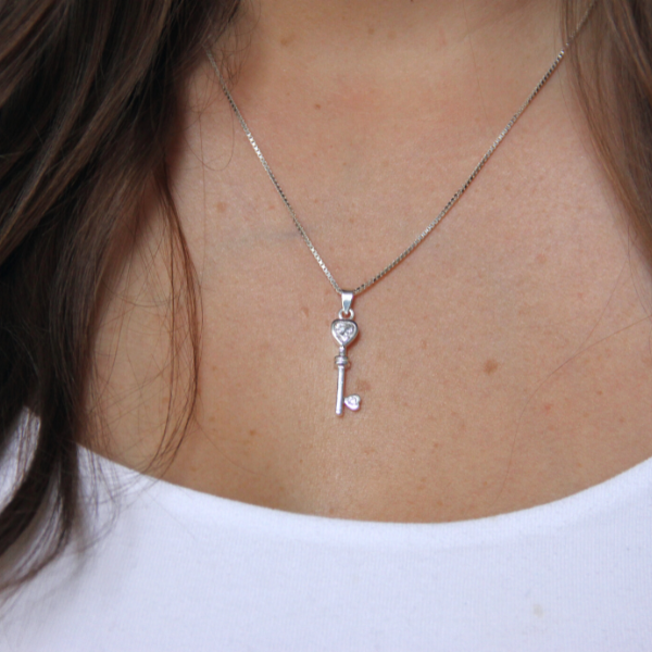 You hold the key to my heart! Vilken fin present att få av någon, en nyckel som kanske kan visa att du gett bort nyckeln till ditt hjärta, eller kanske som symbol till bästa kompisen att hen har nyckeln till alla dina hemligheter...? Hursomhelst, detta är en jättefin nyckel i äkta silver med en liten zirkoniasten i form av ett hjärta. Nyckeln är ca 30mm lång.