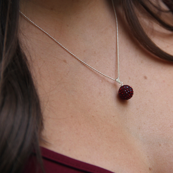 HALSSMYCKE/BERLOCK KRISTALLBOLL, MÖRKRÖD