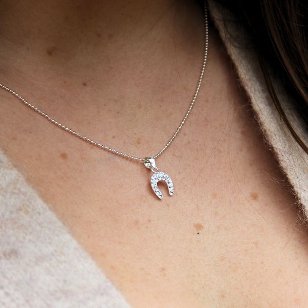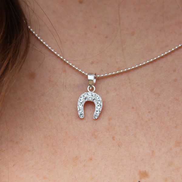 HALSSMYCKE/BERLOCK I SILVER VIT STRASS HÄSTSKO