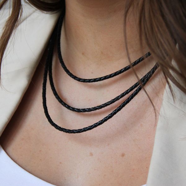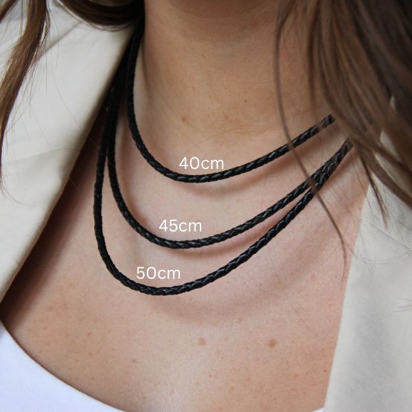 Tjockare flätad läderrem 3mm tjock med silverknäppe och silverbeslag. Finns i flera längder. Färgen är svart. Du väljer längd i menyn.