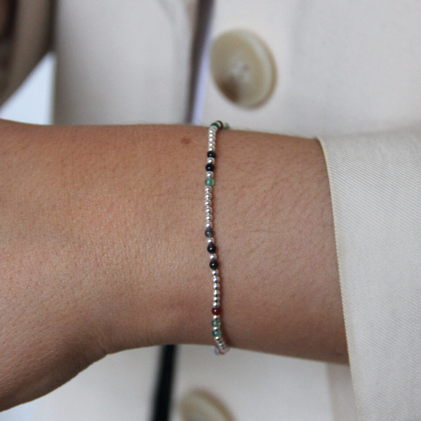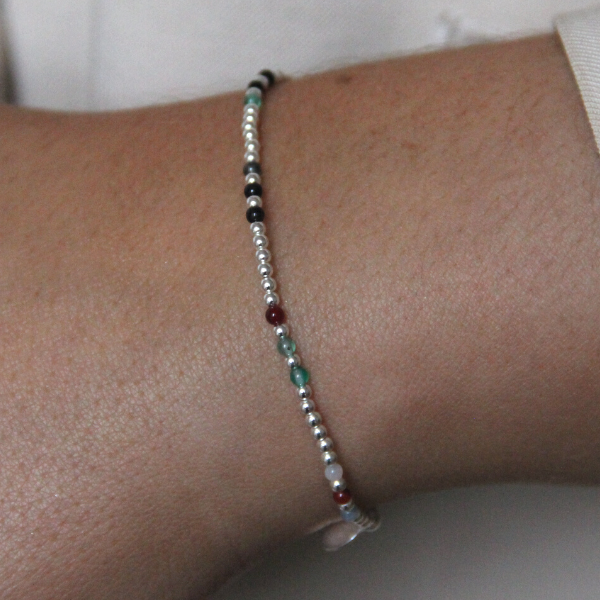 SILVERARMBAND MIXED AGAT ELASTIC