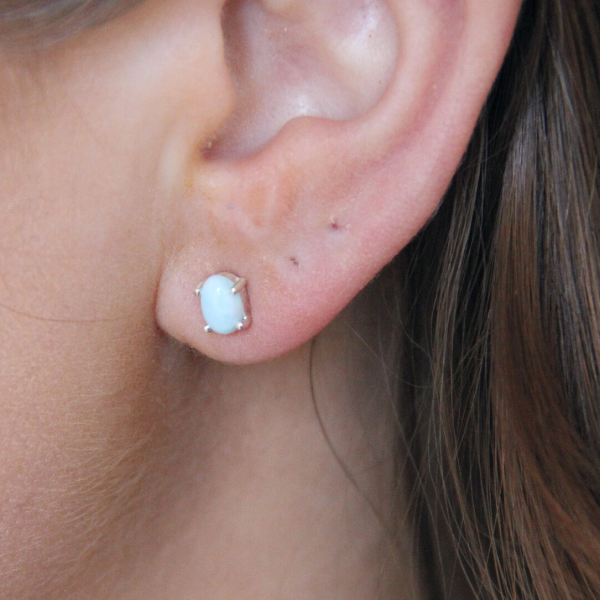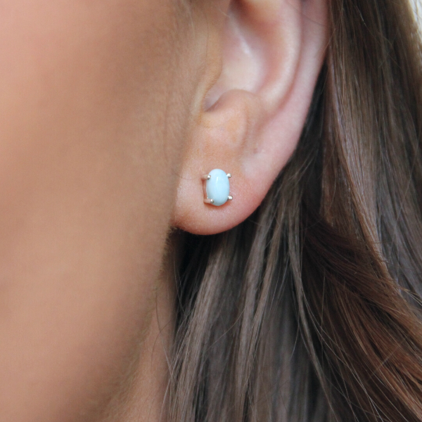 Ett par magiska silverörhängen med äkta larimar. Klassisk och tidlös design. Fantastiskt vackra! Örhängena mäter 4x6mm. De skiftar och kan vara något blåare än vad som upplevs på skärmen. LARIMAR: Larimar ger oss både frihet och gemenskap i relationer. Den stöder oss att vara lyckliga tillsammans och kunna prata och kommunicera med varandra. Använd Larimar när du vill kommunicera från hjärtat, från din sanning till allas lycka och glädje.