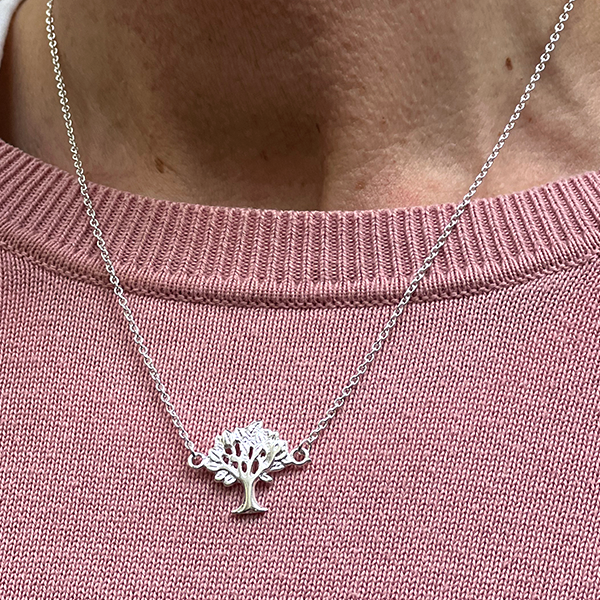 Ett klassiskt silverhalsband med ett träd. Trädet är 2,5cm och halsbandet är 40 med en förlängning på 5 cm.