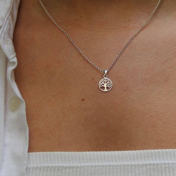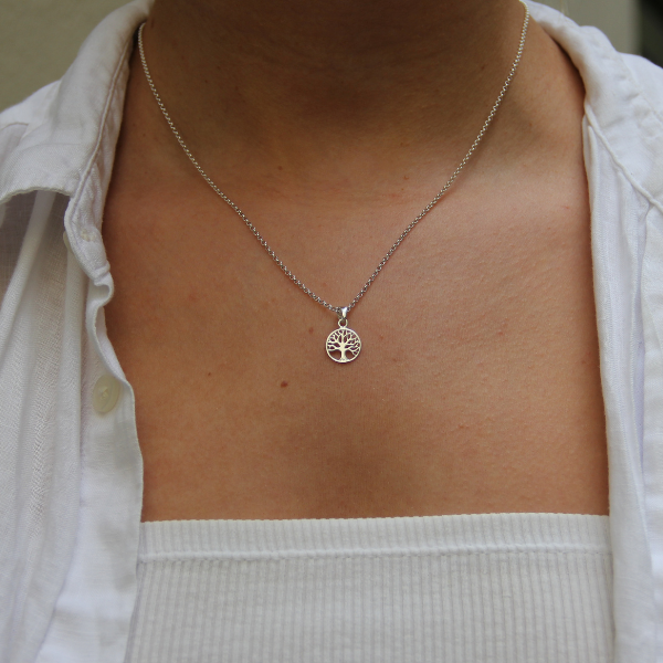 Sött halssmycke till halsband från serien Livets Träd för att hänga på en fin silverkedja! Mäter 10 mm i diameter. Denna varianten av smycke är ljus, dvs ingen oxidering. Obs, Kedja medföljer ej utan du väljer själv kedja i menyn.