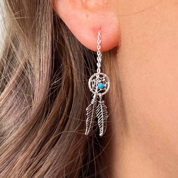 SILVERÖRHÄNGE MED KEDJA DRÖMFÅNGARE TURKOS