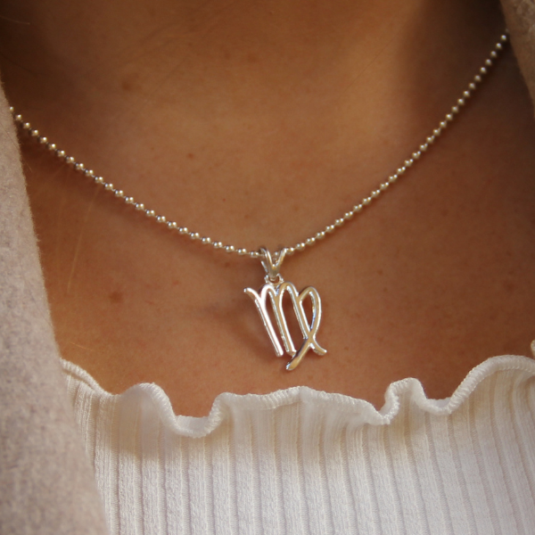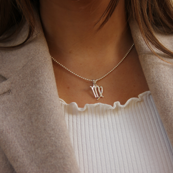 Denna kollektionen består av alla 12 stjärntecknen. Jungfruns tecken mäter cirka 25x15mm med hänget.