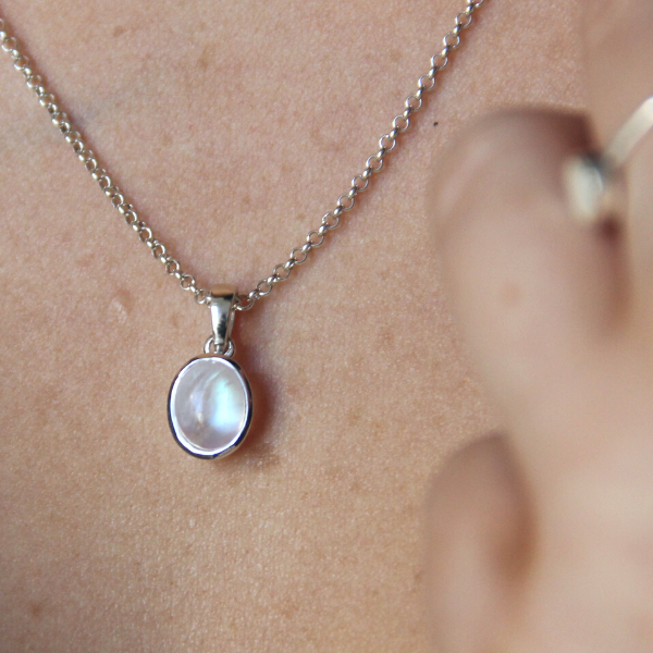 HALSSMYCKE I SILVER MED ÄKTA MÅNSTEN