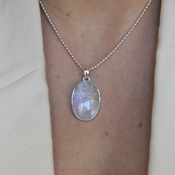 HALSSMYCKE/BERLOCK I SILVER MED ÄKTA MÅNSTEN