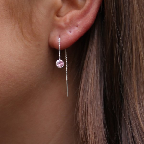 En rosa, rund sten hängandes på en kedja. Kan kombineras hur du vill och du kan justera längden på var du vill att droppen ska sluta. Stenen är cubic zirkonia.