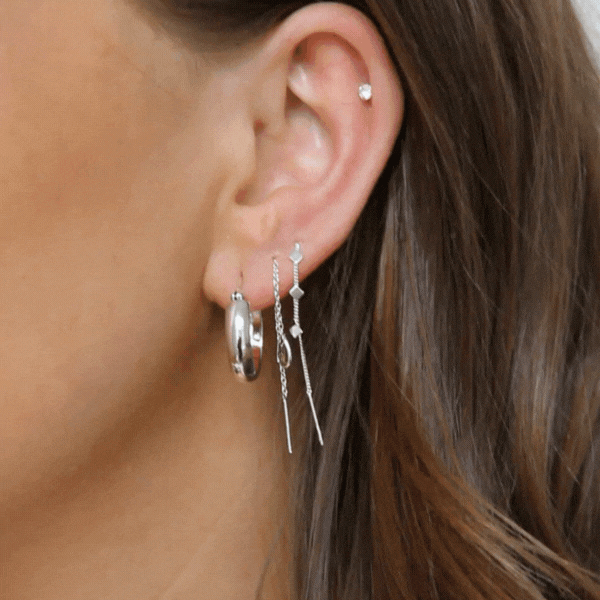 Vackert örhänge med kedja där kedjan slutar i en fin zirkoniadroppe. Örhänget är ett så kallat "dra igenom"-örhänge. Kan kombineras hur du vill och du kan justera längden på var du vill att droppen ska sluta.