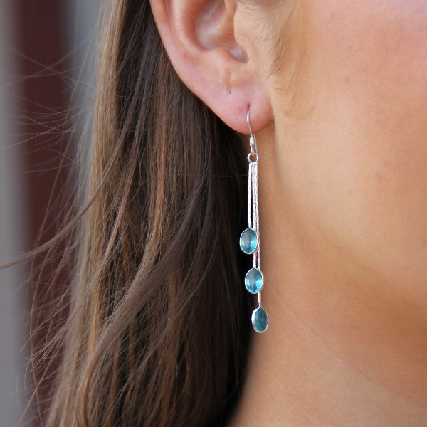 Ett par helt fantastiska örhängen med tre dinglande stenar! Jätte fina att låta dem tala för sig själv eller kombinera med fler örhängen.