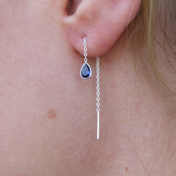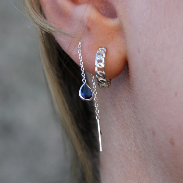 SILVERÖRHÄNGE MED KEDJA OCH BLÅ DROPPE