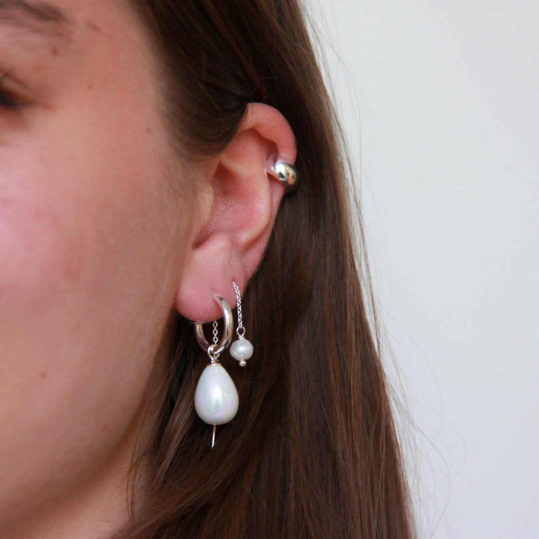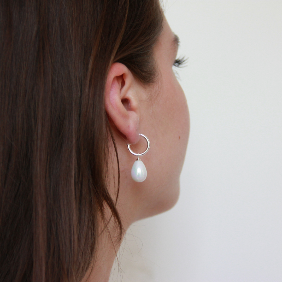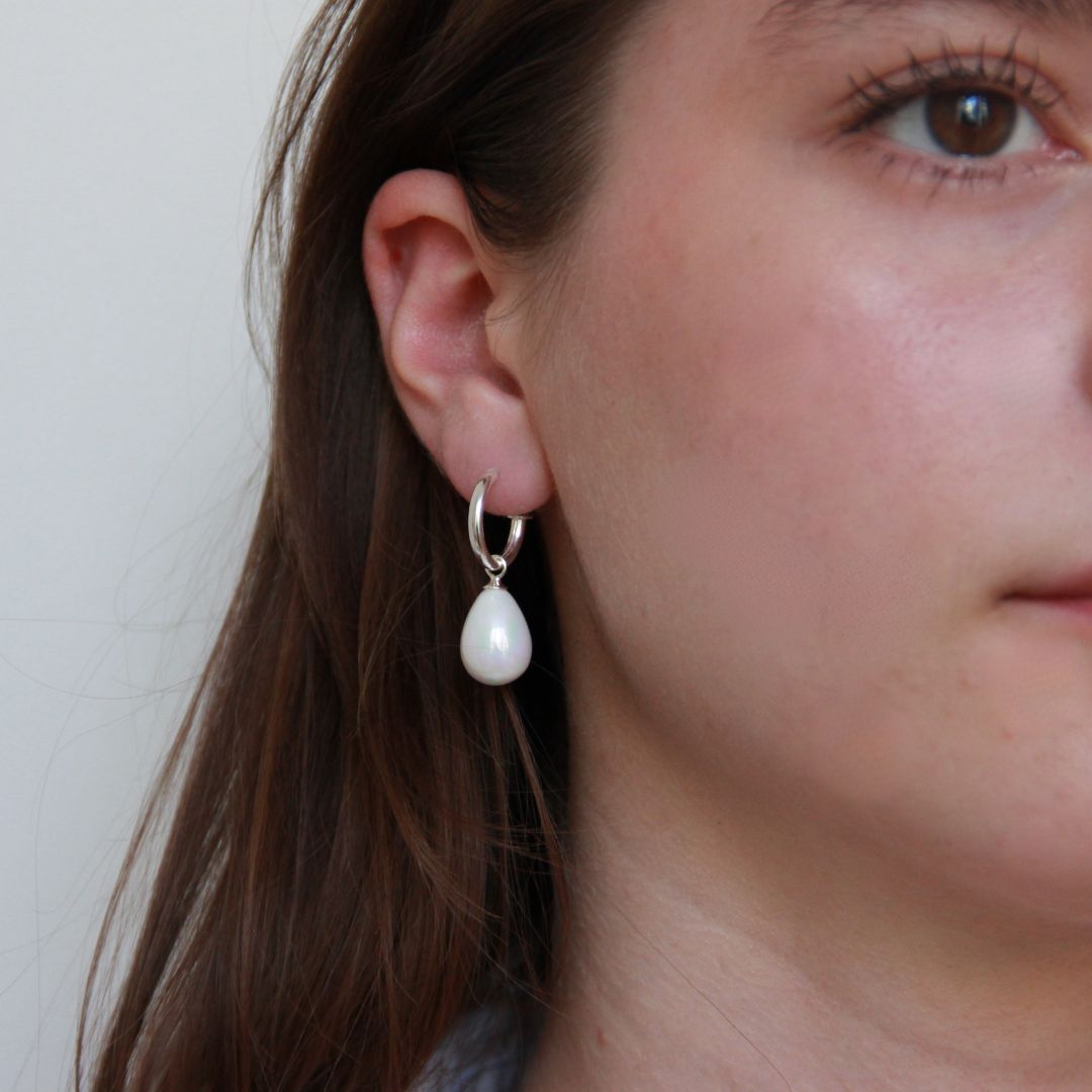 Vackert skimrande droppe av pärlemor på en creol. På engelska kallas pärlemor för "mother of pearls". Pärlans mamma är alltså själva snäckan som pärlan ligger i, och det är snäckans vackra skal man tillverkar pärlemor av.