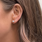 Klassiskt örhänge med en odlad sötvattenpärla på silverstift. Pärlan är ca 5-6 mm i diameter. En äkta pärla är ej helt symmetrisk utan kan ha små mikroränder, ojämn form etc.
