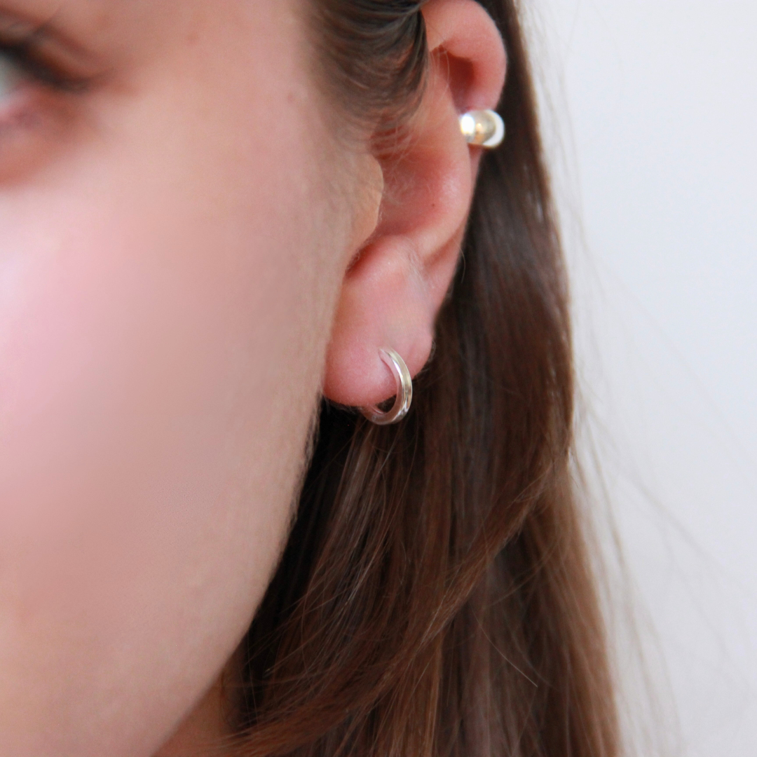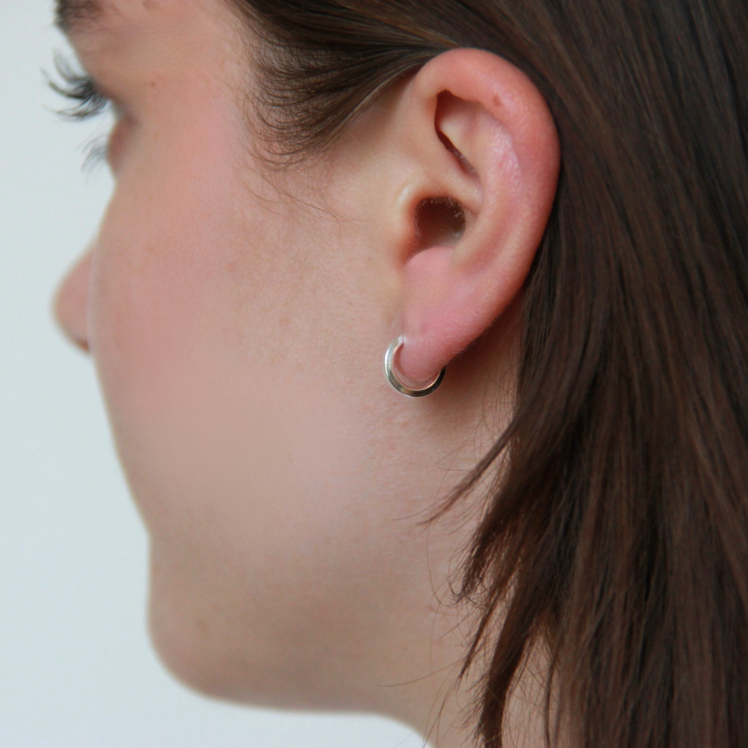 En liten silvercreol som knäpps med stift och fluga. Creolen är 2 mm bred och är kantig i formen. 12 mm i diameter.