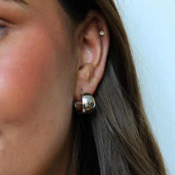Klassisk hoop som knäpps med stift och fluga. Mäter 10x16 mm.
