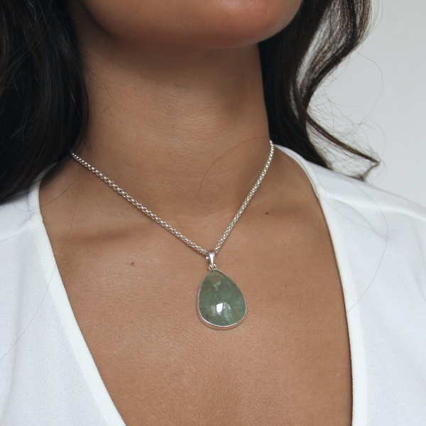 HALSSMYCKE I SILVER MED ÄKTA PREHNITE