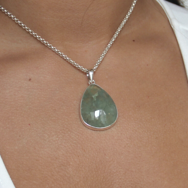 HALSSMYCKE/BERLOCK I SILVER MED ÄKTA PREHNITE