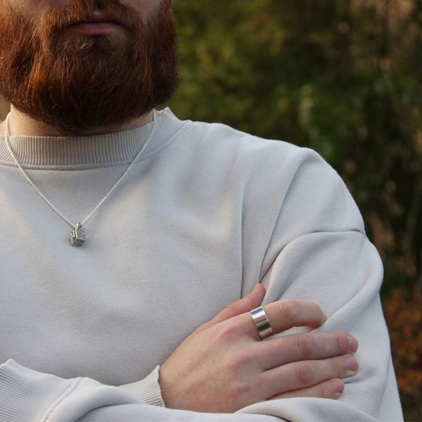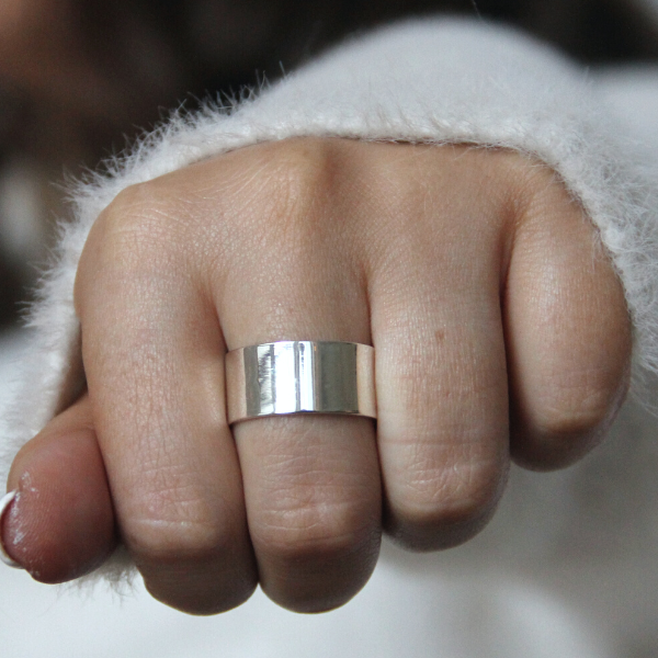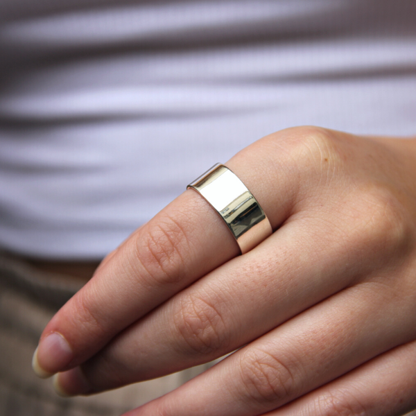 Vem vill inte ha en bred och snygg silverring som glänser vackert. Snygg på alla slags fingrar och alla händer. Funkar både till män och kvinnor förstås. Och varför inte som förlovningsring?