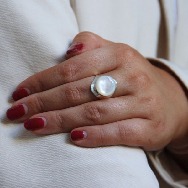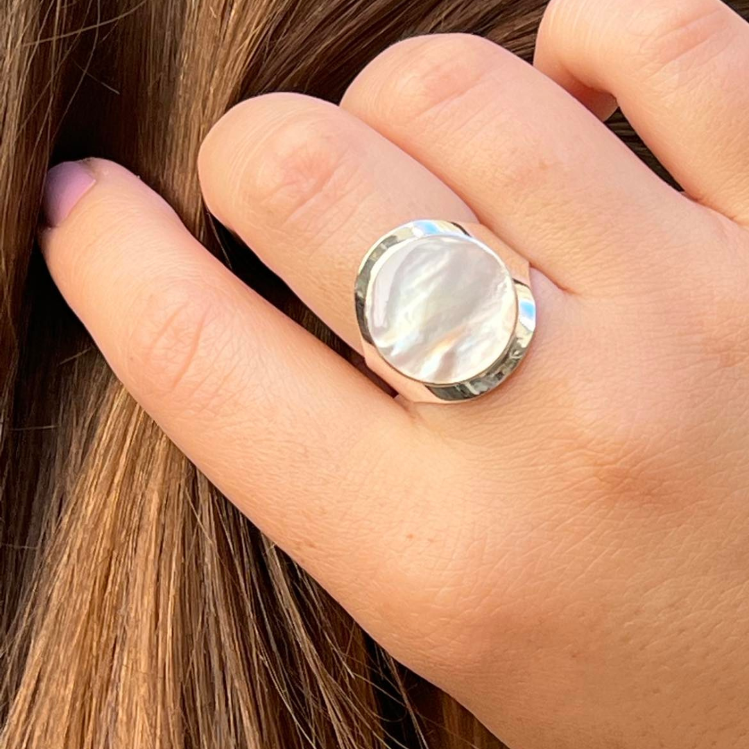 SILVERRING ROYAL SIGNET RING VIT PÄRLEMOR