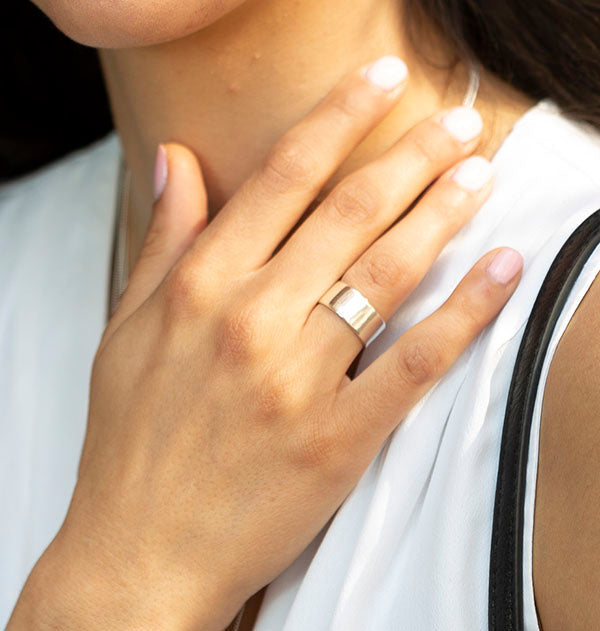 En ring i slät silver som är 7 mm bred. Ringen finns också i 11 mm samt 5 mm bredd.