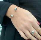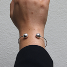 Stilrent och elegant stelt armband med två silverkulor. Armbandet är ca 50x60 mm.