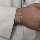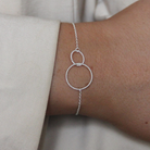 Ett trendigt silverarmband med två ringar i varandra. Den lilla ringen mäter 10mm i diameter och den stora ringen mäter 16mm i diameter.
