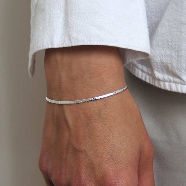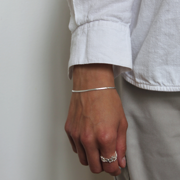 Ett vackert, klassiskt silverarmband. Denna modell på kedja kallas för herringbone och håller alltid stilen! Silverarmbandet är ca 2mm bred.