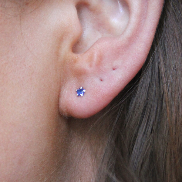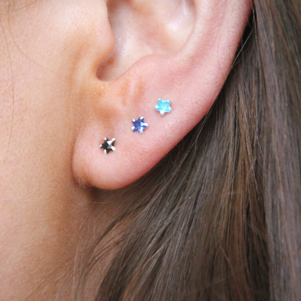 Söt liten stjärnformad zirkon endast 3 mm stor. Supergullig att ha helt ensam i örat eller tillsammans med andra örhänge. Sitter på stift som knäpps med fjäril på baksidan av örat.