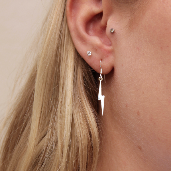 Fina, hängande örhängen i form av en blixt! Denna blixten mäter 4mm x23mm och är lite mindre än vår andra blixt på krok, men precis lika fina!