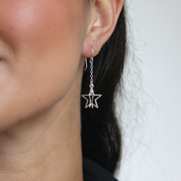 Snygga stjärnor på kedja! 35mm från botten av stjärnan upp till där kroken börjar. Själva stjärnan är 15mm i diameter.