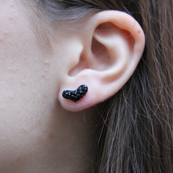 SILVERÖRHÄNGE HJÄRTA SVART STRASS