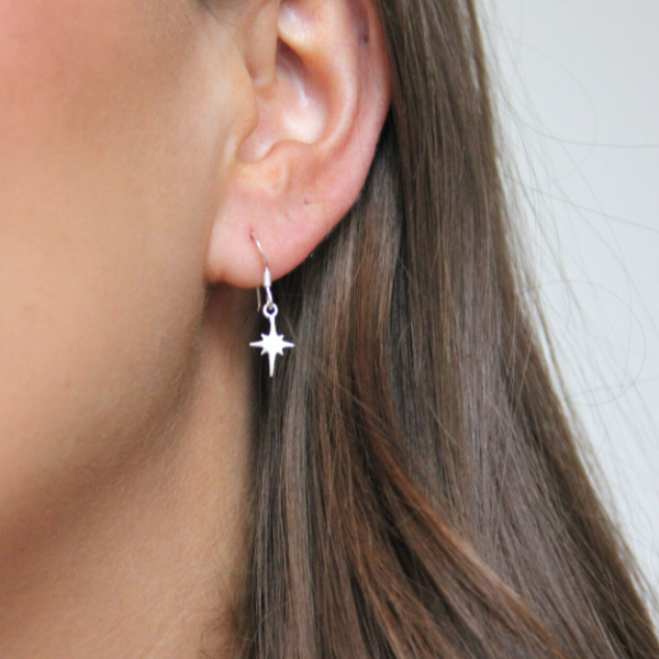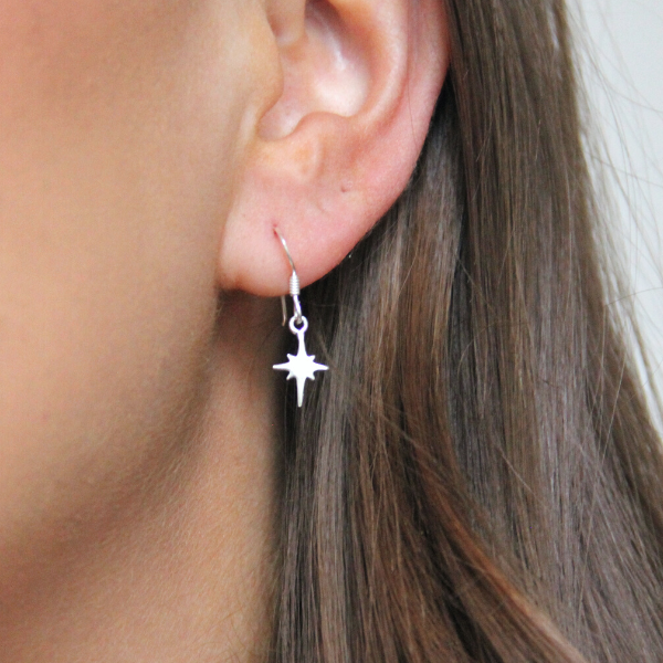 Ett par snygga stjärnor som dinglar i öronen, föreställande polstjärnan. Lika snygga att ha på festen som till vardags. Stjärnan mäter 10x8mm.