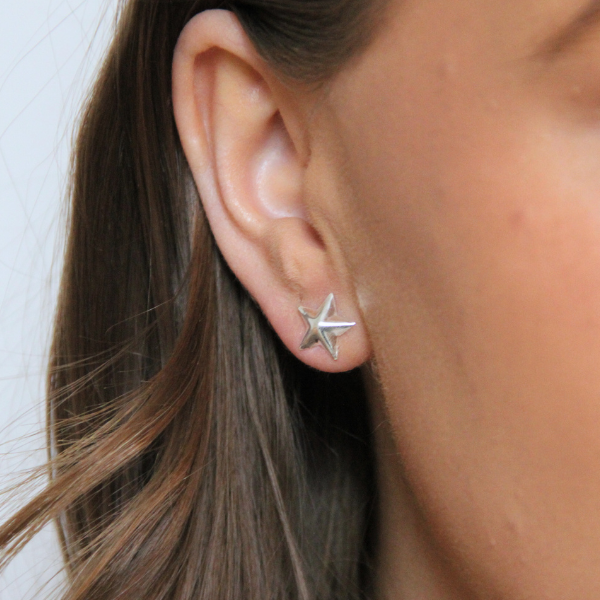 Ett par silverörhängen i form av ett par stjärnor. Stjärnorna är upphöjda mot mitten och passar superfint ihop med vår earclimber "Stars", med artikelnummer EC0075. Dessa godingar mäter ca 11mm i diameter.