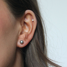 Ett par söta små pärlörhängen som mäter 6mm i diameter. Dessa kallar vi för "perfect pearl" då de är gjorda för att vara perfekt runda, eftersom vi märkt att efterfrågan varit stor på just perfekta pärlor. Dessa pärlor kallas skalpärlor. Själva stiftet och "pluppen" är 925 Sterling Silver.