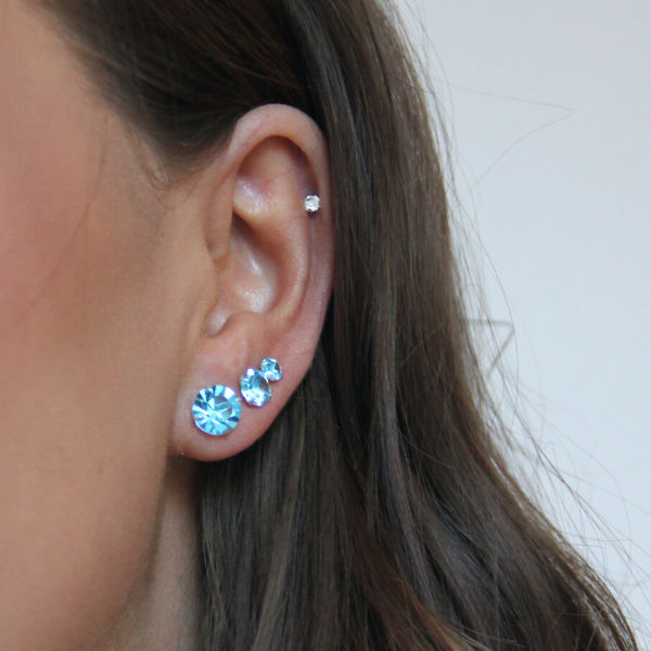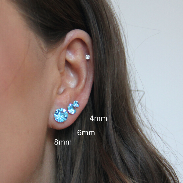 Ett par otroligt vackra örhängen med två fasettslipade Cubic Zirconia stenar. Finns i flera olika storlekar. Du väljer storlek i menyn. Snyggt att ha flera storlekar i samma öra!