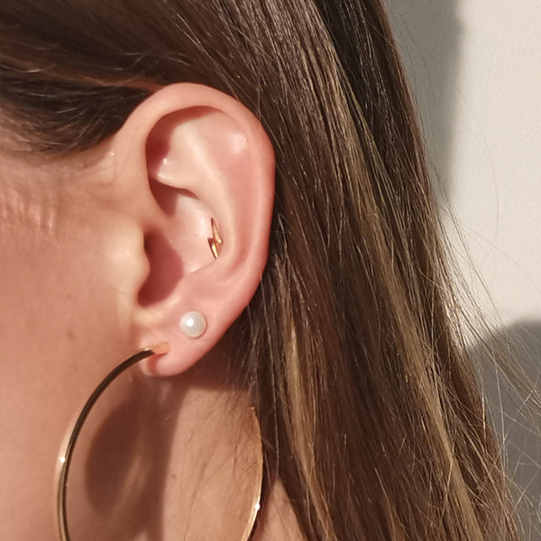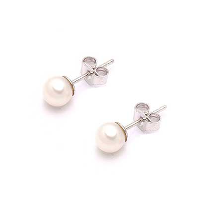 Klassiskt örhänge med en odlad sötvattenpärla på silverstift. Pärlan är ca 5 mm i diameter. En äkta pärla är ej helt symmetrisk utan kan ha små mikroränder, ojämn form etc.