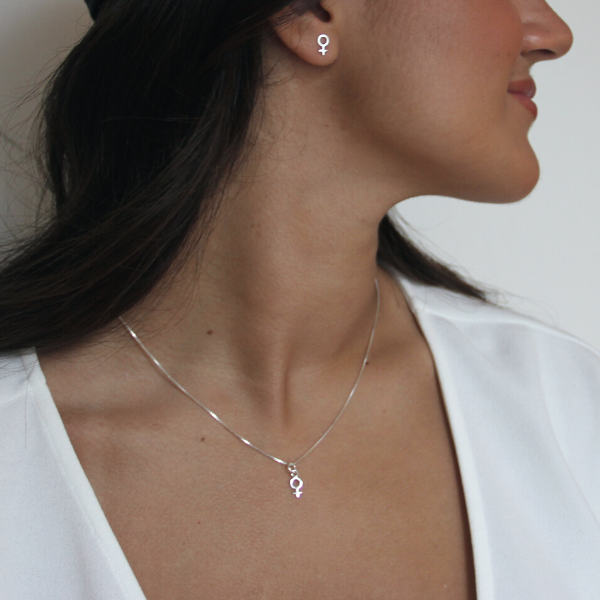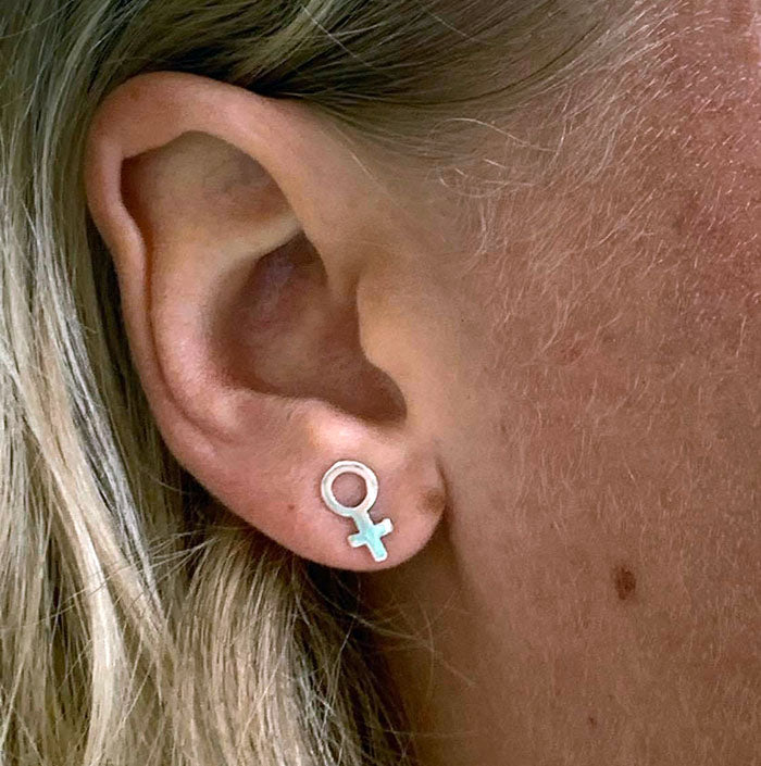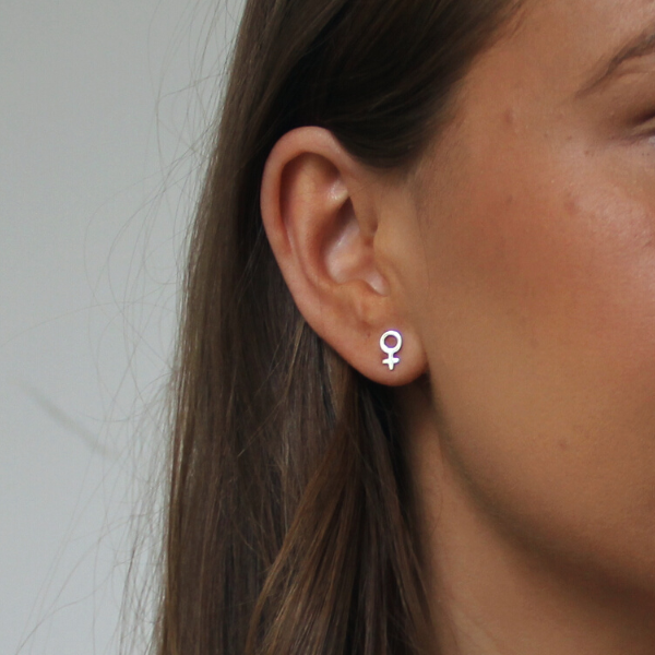 Sött litet örhänge med Venustecknet. Det större tecknet är 11x6 mm och det mindre tecknet är ca 9mm x 5mm. Det är väldigt liten skillnad på dem i storlek men det mindre är något tjockare silver.