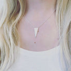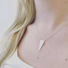 Coolt och enkelt halsband med en utdragen triangel. Storleken på triangeln är 10 *25 mm och den har en något borstad finish. Längden på kedjan är ca 40 cm med en förlängningskedja som gör att den kan bli upp till 45 cm.