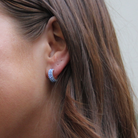 Ett par glittrande silverörhängen i färgen aqua marin. 18mm i diameter och ca 5mm breda.