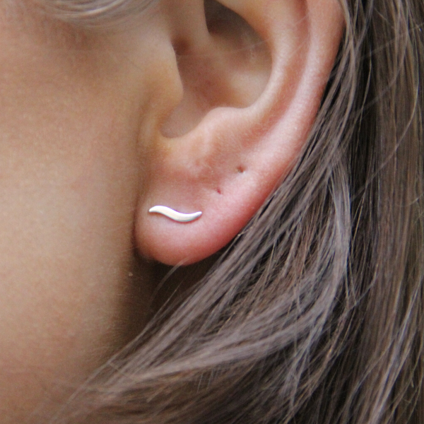 Ett par små söta silverörhängen i form av en tunn liten våg. Dessa mäter 9x2mm.